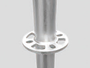 将[350mm起步立杆]短头( 150mm )朝下套入可调底座上方,下缘完全置于扳手受力平面的凹槽内。